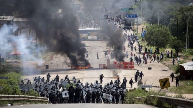 Six people have been killed in southern Mexico in clashes between protesting teachers and police.